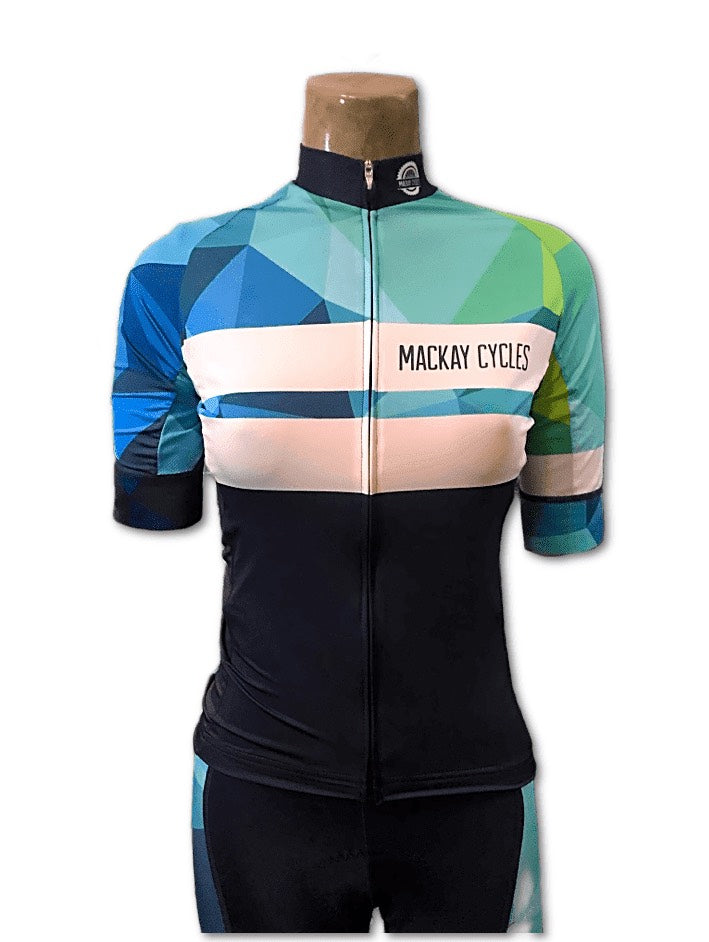 MACKAY CYCLES WMN GEO TEAL JERSEY