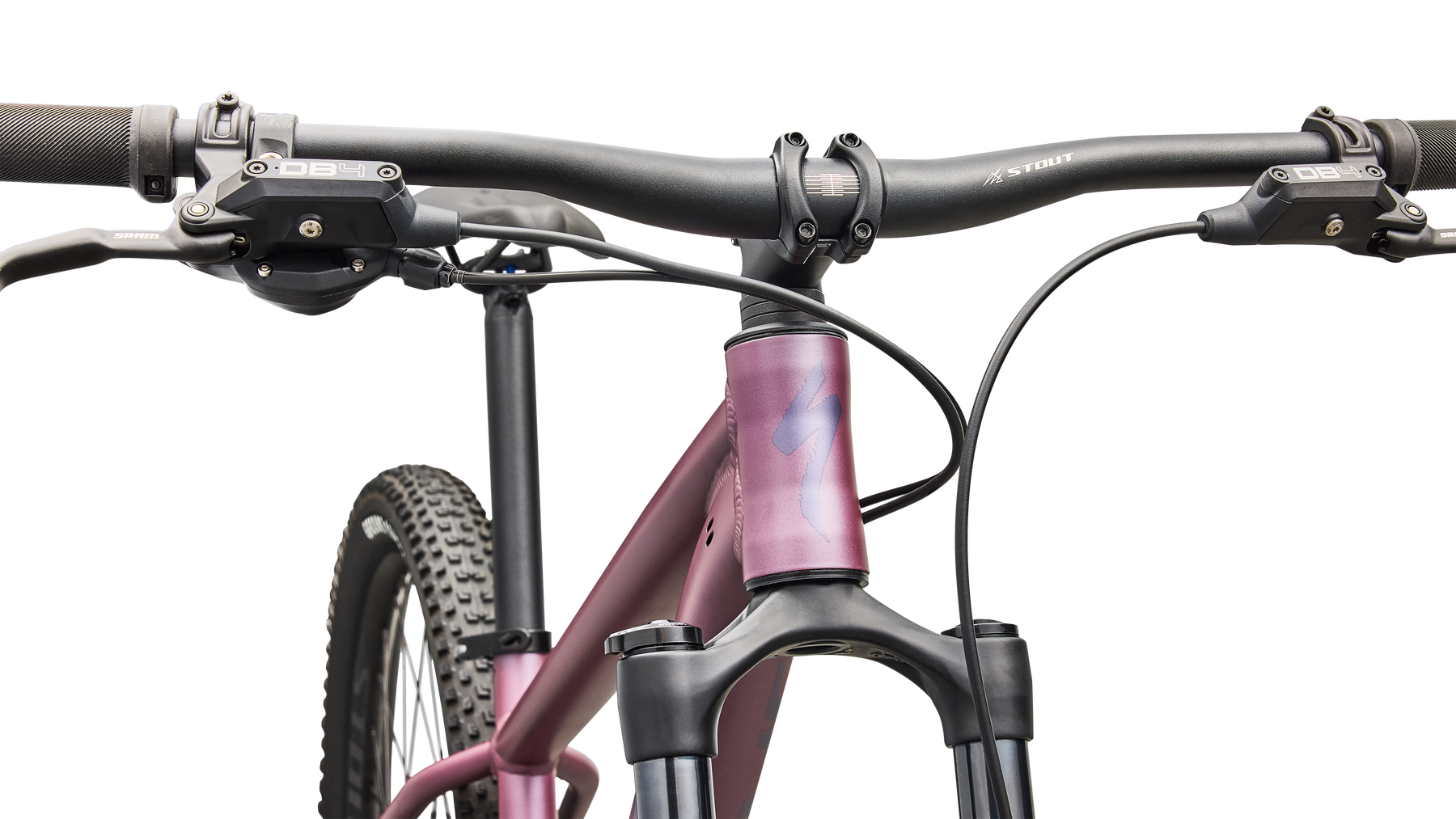 - SRAM DB4 4-piston hydraulic disc brakes — more stopping power than the Comp's 2-piston